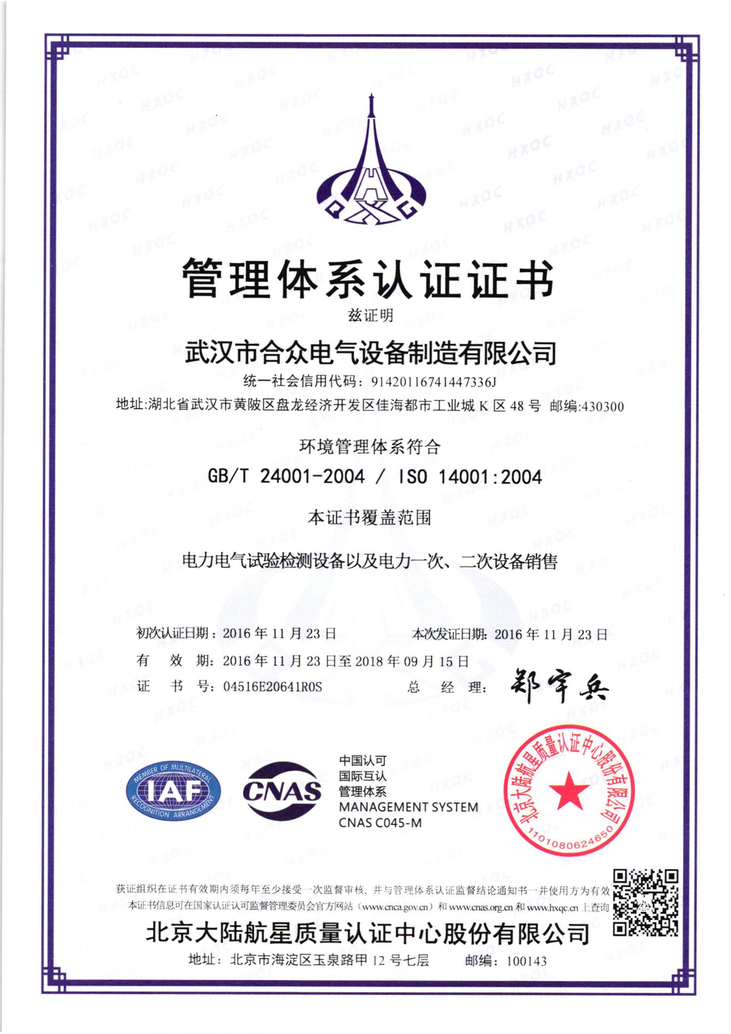 ISO14001環境管理體系認證