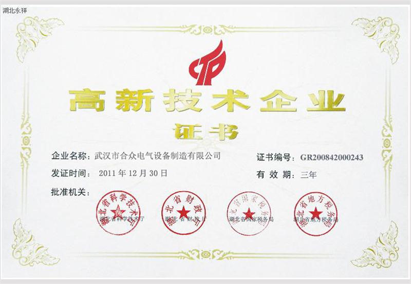 高新技術(shù)企業(yè)作者:合眾電氣發(fā)布時間:2015-04-08瀏覽量:12695 次字體顯示:【大】【中】【小】 高新技術(shù)企業(yè) 上一篇: 重質(zhì)量守信用企業(yè)下一篇: 湖北企業(yè)100強(qiáng)