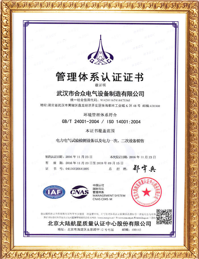 合眾電氣通過職業健康和環境管理質量管理認證作者:合眾電氣發布時間:2016-12-05瀏覽量:20962 次字體顯示:【大】【中】【小】 熱烈祝賀武漢市合眾電氣設備制造有限公司,同時通過職業健康和環境管理質量管理體系認證。 上一篇: 合眾電氣關于2018年端午節的放假通知下一篇: 武漢合眾電氣羅小勇青年創業先鋒