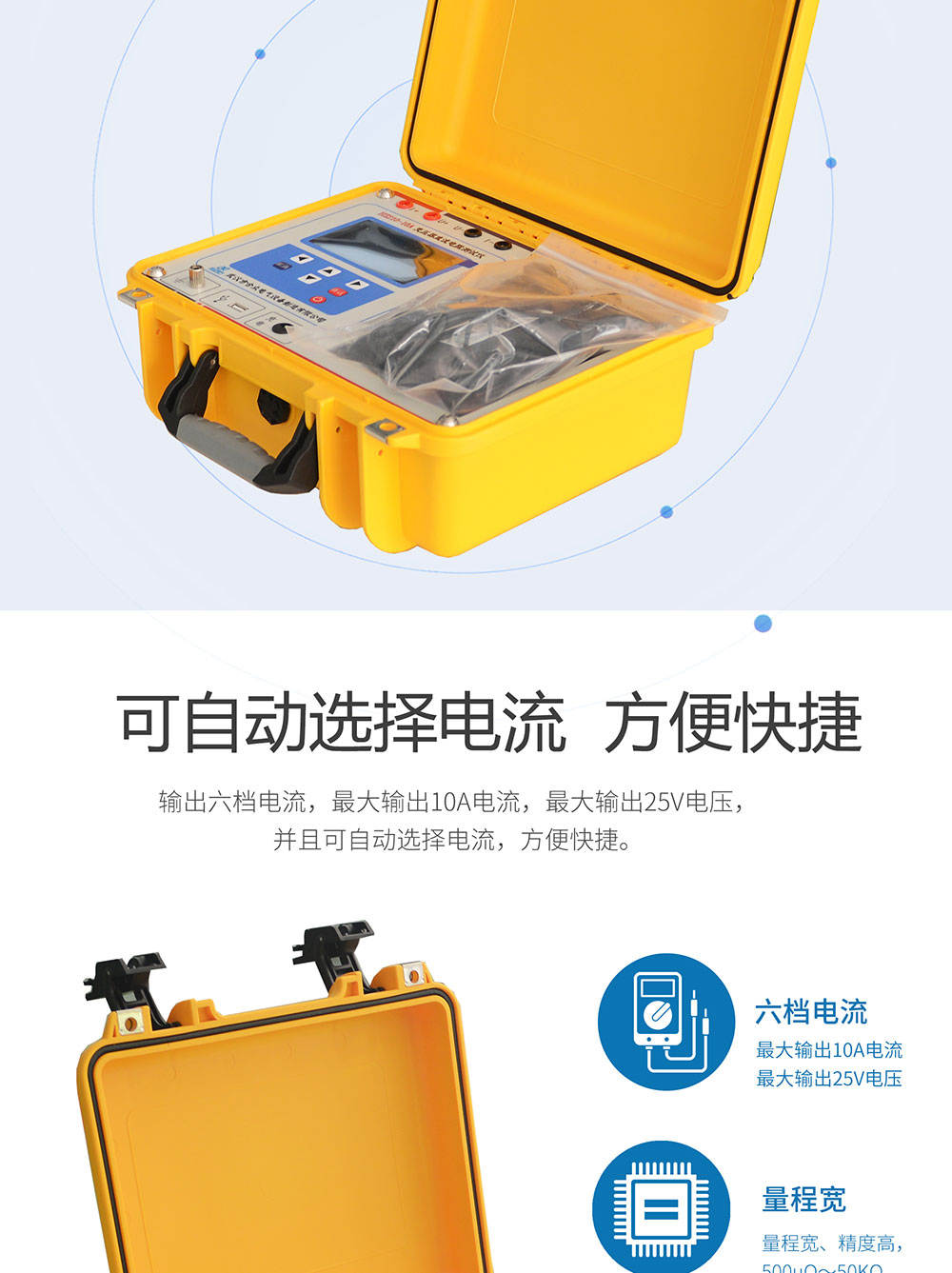 1、鋰電池供電或者220V交流供電自適應(yīng),一次充電,可連續(xù)進(jìn)行上百臺(tái)變壓器直流電阻測(cè)試,測(cè)試過(guò)程簡(jiǎn)單、方便。
