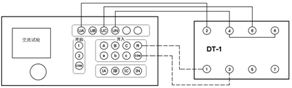 在微機繼電保護測試儀交流試驗中,設定Ua、Uc輸出額定電壓接入兩線圈,繼電器不動作,但斷開任一線圈繼電器即動作,說明2、6為同極性端子,否則2、4為同極性端子。