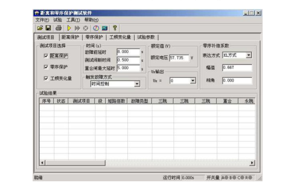 在110KV及以上線路保護(hù)中一般都設(shè)置了距離和零序保護(hù)作為線路的主保護(hù),而且經(jīng)常集中在一套保護(hù)裝置中。距離和零序保護(hù)測(cè)試模塊就是針對(duì)這種情況開(kāi)發(fā)的能一次性自動(dòng)測(cè)試完各種接地距離、相間距離和零序保護(hù)的軟件。