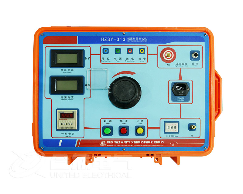 HZSY-313低壓耐壓測試儀采用先進的微電子處理技術,全部使用過程可提前進行設置,全中文接口,操作簡單明了。全部測試項目設定后自動進行測試,無須人工干預。